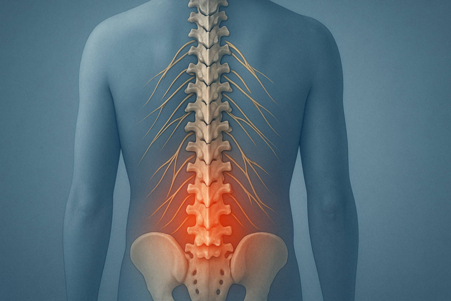 Uszkodzenie korzeni nerwowych w dolnej części kręgosłupa objawia się przede wszystkim bólem w okolicy lędźwiowej i krzyżowej. To jednak nie wszystko – charakterystyczną cechą jest ból promieniujący wzdłuż nogi, potocznie nazywany rwą kulszową lub rwą udową, w zależności od tego, który nerw jest uciskany.