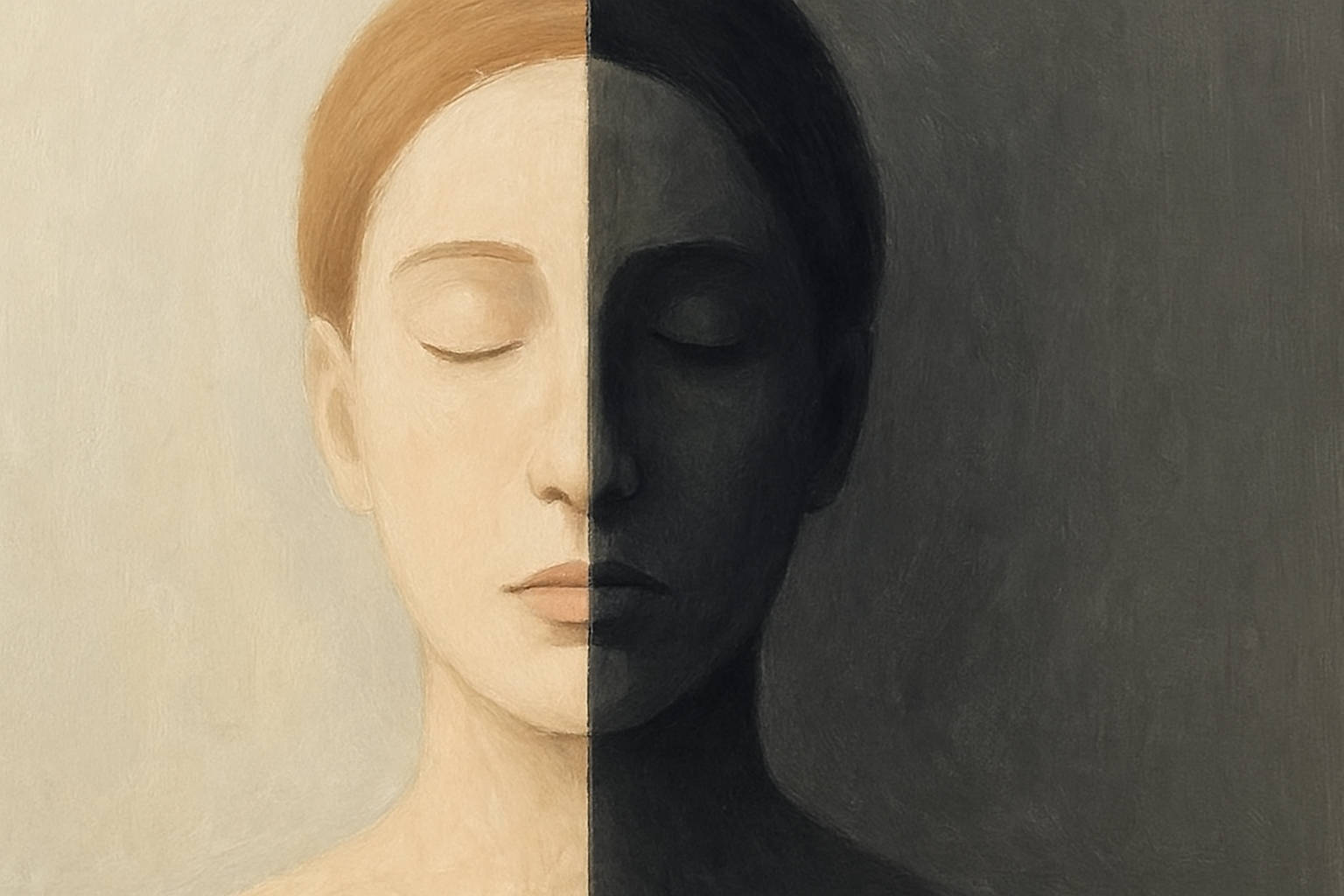 Ilustracja symbolizująca dwubiegunowość, twarz w dwóch odcieniach