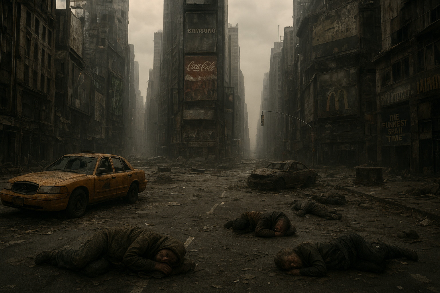 Wizja opuszczonego Time Square w Nowym Jorku w wyniku epidemii Fentanylu