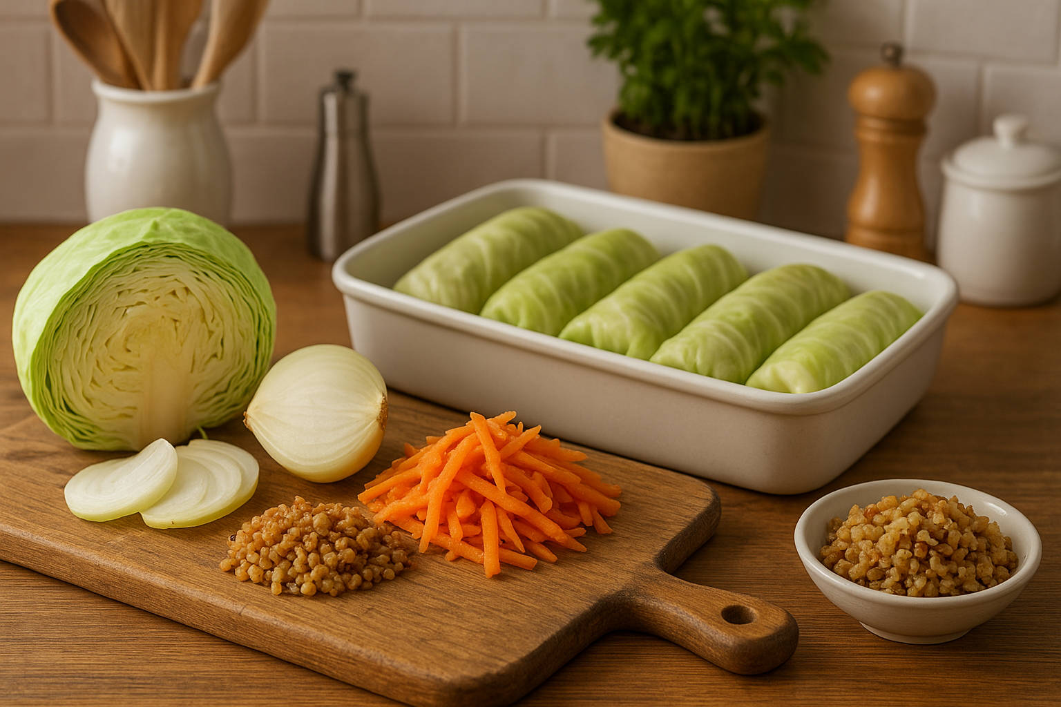 Podstawa gołąbków: Kapusta włoska stanowi serce przepisu – wybierz główkę ważącą około 1,2-1,5 kg z dużymi, nienaruszonymi liśćmi. Do farszu potrzebna będzie kasza gryczana lub brązowy ryż (200g), pół szklanki czerwonej soczewicy, która zwiększy zawartość białka, oraz garść kaszy bulgur (50g) dla dodatkowej tekstury.