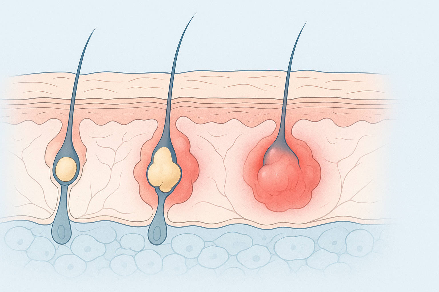 Przekrojowa ilustracja tworzenia się wyprysków na skórze