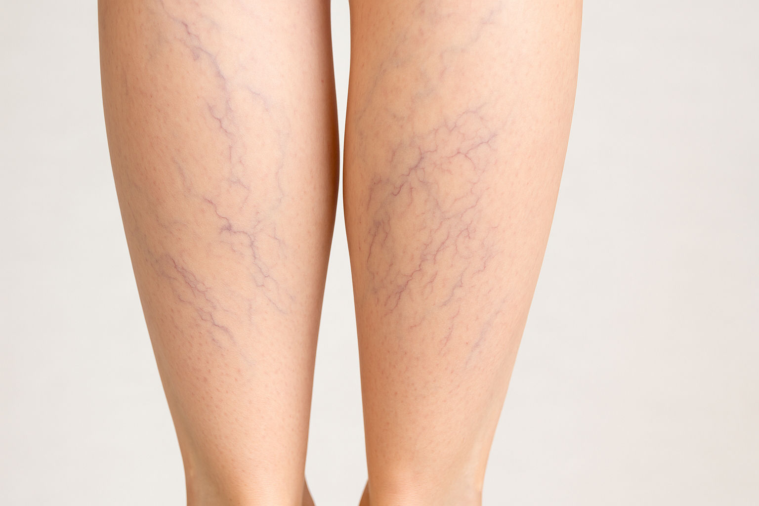 Zdjęcie łydek z widocznymi żyłami i żylakami
