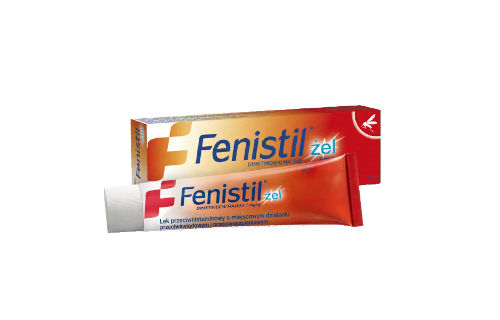 - W przypadkach szczególnie nasilonego świądu lub znacznego uszkodzenia skóry, leczenie miejscowe preparatem Fenistil w postaci żelu, powinno być uzupełnione stosowaniem dimetyndenu maleinianu w postaci doustnej.