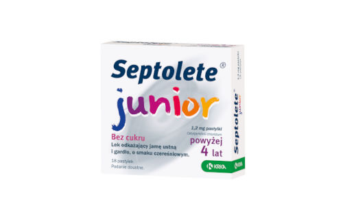 Home Baza leków Leki na układ oddechowy Leki na choroby gardła Septolete Junior, Pastylka twarda