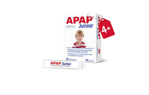 Produkt leczniczy Apap Junior stosuje się w objawowym leczeniu łagodnego do umiarkowanego bólu oraz gorączki.