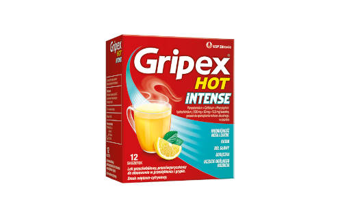 Home Baza leków Leki na układ nerwowy Leki przeciwbólowe Inne leki przeciwbólowe i przeciwgorączkowe Gripex Hot Intense, Proszek